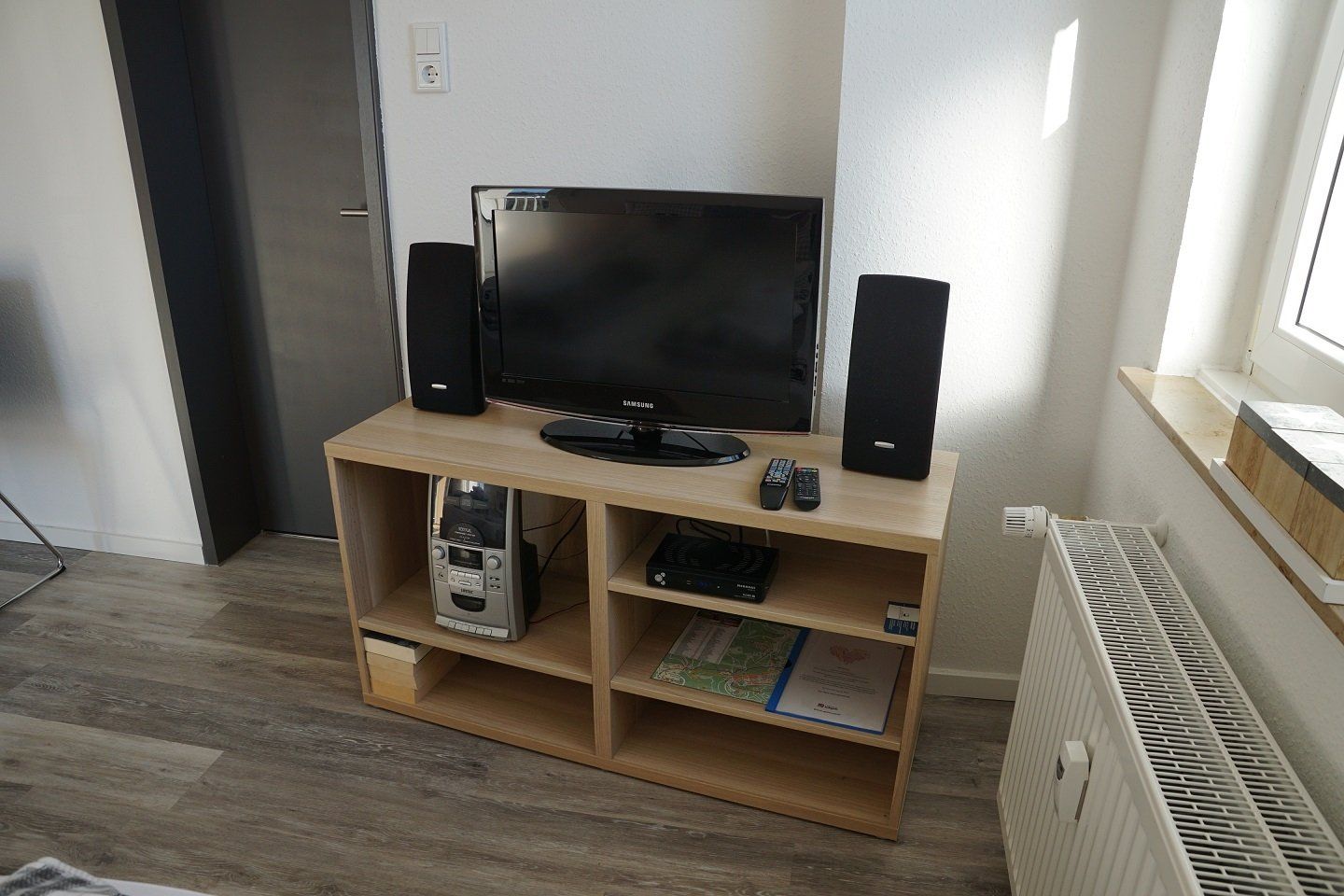 Das Wohnzimmer ist mit einer Hi-Fi-Anlage sowie mit einem Flachbild-Fernseher (digitaler SAT-Anschluss mit Aufnahmefunktion) und DVD-Player ausgestattet. Die Küche ist komplett mit Geschirrspülmaschine, Mikrowelle, Backofen und vielem, was man zum Kochen oder Backen benötigt, ausgestattet.