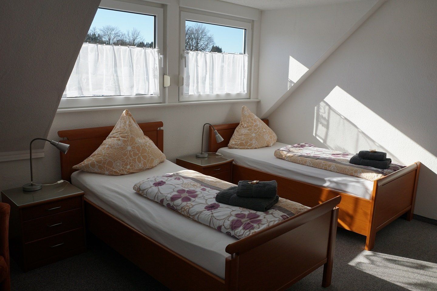 Die Nichtraucher-Wohnung ist für 4 Personen ausgelegt. Sie verfügt über zwei getrennte Schlafzimmer. Ein Schlafzimmer ist mit einem Doppelbett eingerichtet, in dem zweiten Schlafzimmer sind zwei Einzelbetten, die mit einem elektrischen Lattenrost ausgestattet sind. Ein Kindergitterbett und ein Kinderhochstuhl befinden sich in der Wohnung.